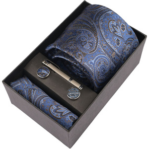 100% כחול בהיר מיקרו פייזלי עניבת jacquard פוליאסטר עניבה עם סט מרובע כיס